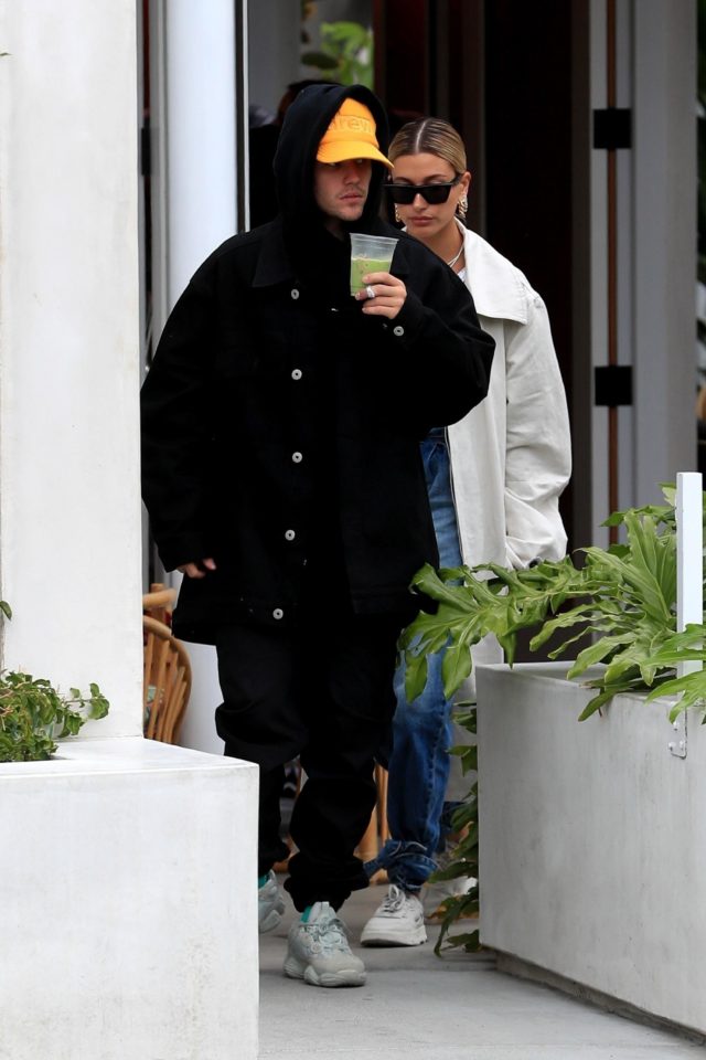 Джастин (25) и Хейли Бибер (22) все время проводят вместе! На днях супругов сфотографировали на завтраке в Лос-Анджелесе в кафе Cha Cha Matcha: там они взяли с собой чай матча и гуляли по городу.