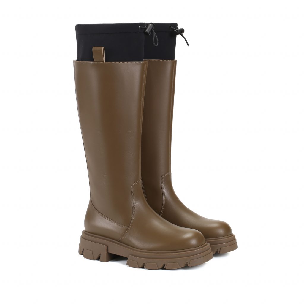 Носи сапоги с высокими шерстяными носками, как это делает основательница бренда YULIAWAVE Юлия Василевская. Образ можно дополнить опасным мини и экстра-длинным пальто мужского кроя.