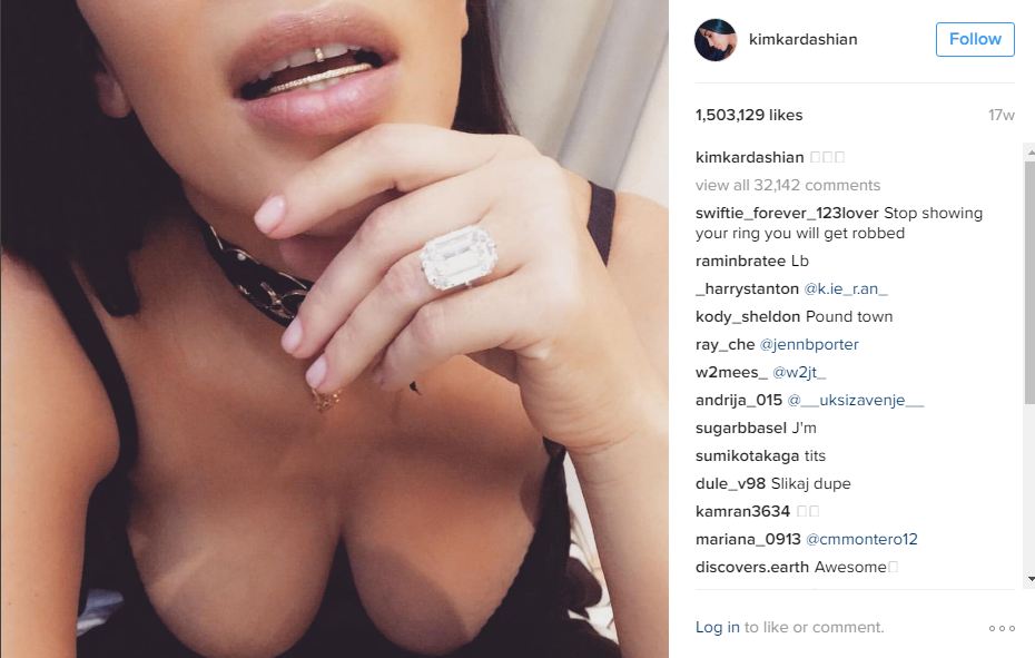 Грабителям удалось украсть драгоценностей общей стоимостью 10 млн долларов. Они очень долго искали кольцо Lorraine Schwartz с бриллиантом в 20 карат, которое подарил Ким Канье. Неудивительно, ведь Кардашьян постоянно хвасталась в Сети шикарными подарками и невероятными аксессуарами.
