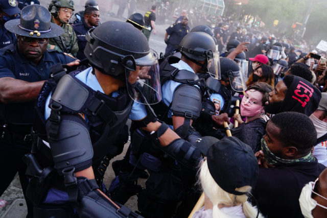 В этот же день в городе ввели режим ЧС – это позволило властям штата использовать дополнительные средства для разгона людей. За час до твита Трампа в официальном аккаунте Национальной гвардии штата Миннесота появилось сообщение: «Мы вводим в Сент-Пол, Миннеаполис и ближайшие пригороды больше 500 бойцов. Наша миссия — спасать жизни, имущество и право на мирный протест. Главная задача — обеспечить способность пожарных команд выезжать на вызовы».