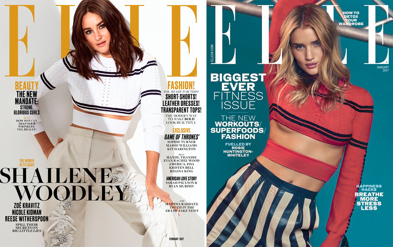 Теперь мы знаем какой топ будет появляться на горизонте почти так же часто как меховые лоферы Gucciв прошлом году — это топ Fendi из коллекции весна-лето 2017. Его можно увидеть даже не на двух, а на трёх обложках глянца: сначала розовый на Гвинет Пэлтроу (44) в InStyle, а потом белый и красный на Шейлин Вудли (25) с Рози Хантингтон-Уайтли (29) на обложках Elle США и Elle Великобритания.