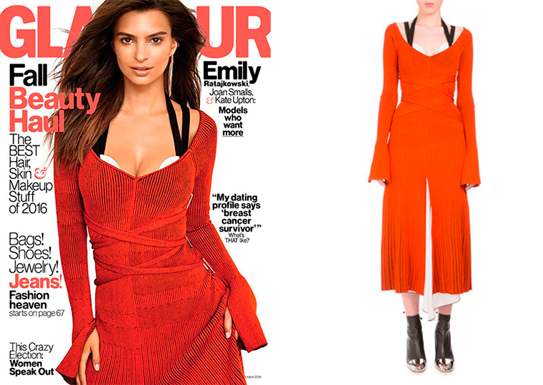 В прошлом сезоне глянцевые журналы были так же неравнодушны к платью Proenza Schouler: в нем на съёмках засветились Эмили Ратаковски (25), Джиджи Хадид (21) и Кендалл Дженнер (21).