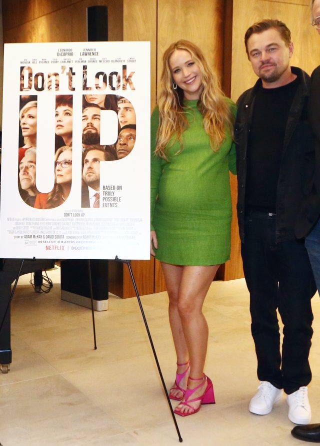 31-летняя актриса Дженнифер Лоуренс ждет своего первенца. Вчера она продемонстрировала свои изменения в фигуре на показе фильма «Не смотрите наверх» вместе с Леонардо ДиКаприо. Актриса появилась в очень коротком зеленом платье, которое прекрасно подчеркивает ее положение.