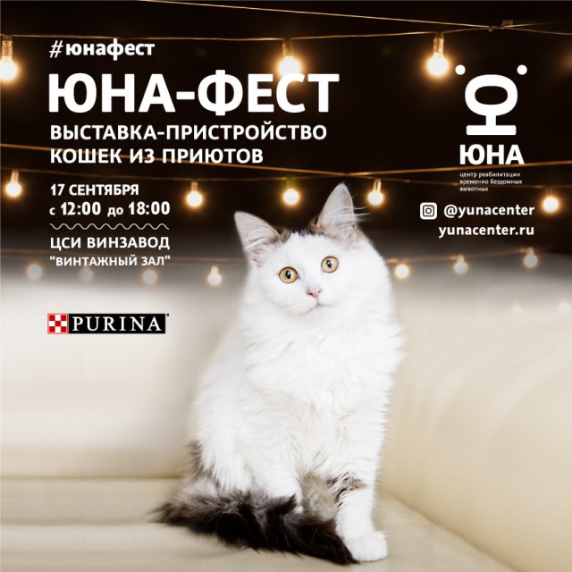 На «Винзаводе» 17 октября пройдет выставка кошек из приютов, организованная Центром реабилитации временно бездомных животных «Юна», и любую из них ты можешь забрать с собой домой.