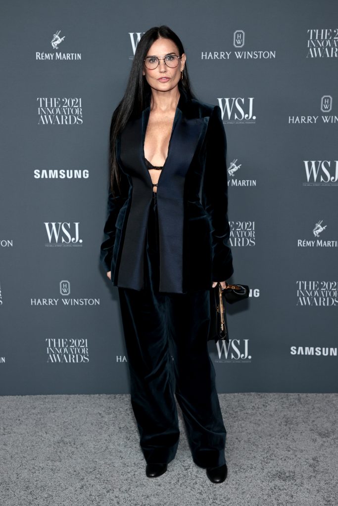 Роскошная Деми Мур в свои 59 даст фору любой молодой девушке! Только посмотрите на ее откровенный образ — актриса надела элегантный бархатный костюм прямо на белье. Надо признать, выглядит очень сексуально.