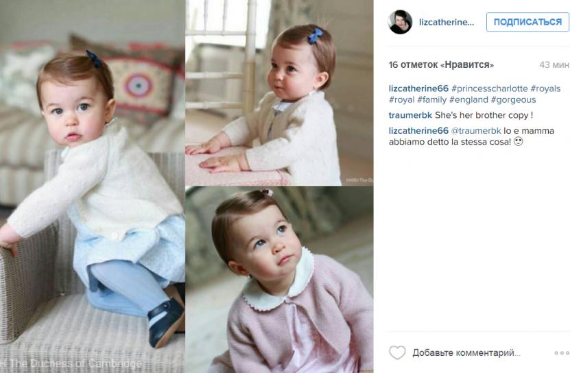Напомним, что маленькая Шарлотта, чье полное имя Шарлотта Елизавета Диана, стала вторым ребенком Кейт и Уильяма. У них также есть сын Джордж, который появился на свет 22 июля 2013 года.