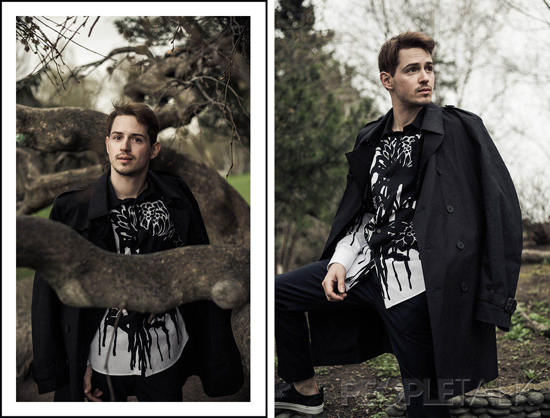 Тренч, Hugo Boss; Рубашка, Alexander McQueen (ЦУМ); Брюки, Alexander McQueen (ЦУМ); Слипоны, Asos