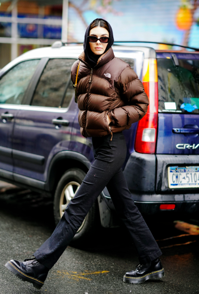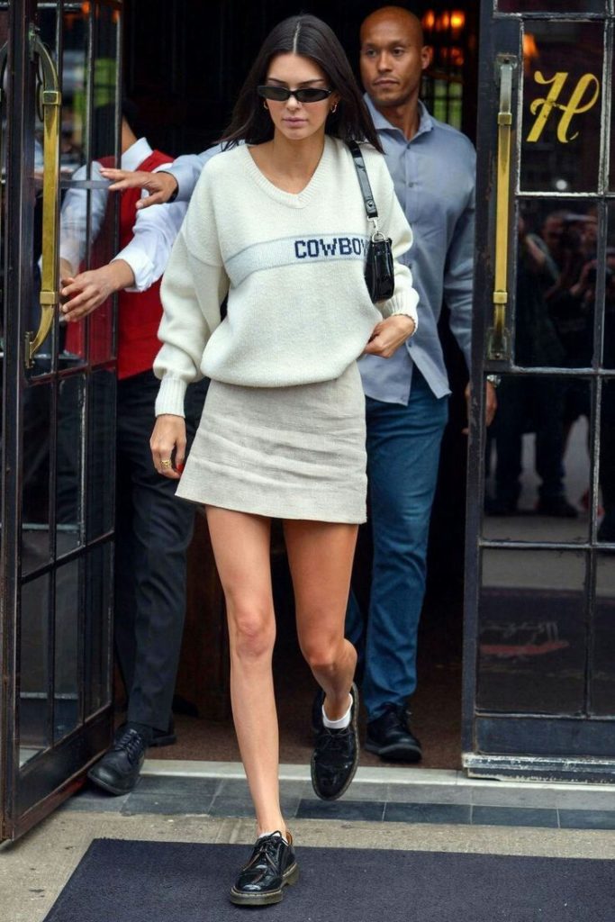 Кендалл доказыает: мартинсы подойдут для любой погоды. Зимой носи их с брюками прямого кроя и пуховиком, весной — с яркой худи, а летом — со свитшотом и мини-юбкой.