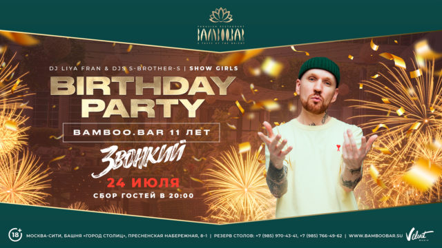 Паназиатский ресторан BAMBOO.BAR приглашает тебя на самую яркую вечеринку лета — уже завтра, 24 июля, заведение отмечает 11-й день рождения. Праздничный вечер откроет ведущий Виталий Бо Валигура.