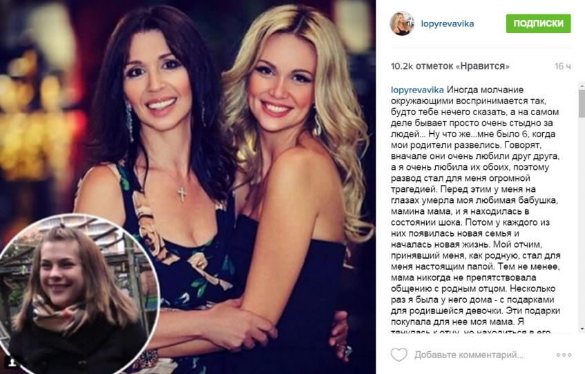 Как оказалось, виной всему стали проблемы в семье. Именно о них и рассказала Виктория на своей страничке в Instagram: «Иногда молчание окружающими воспринимается так, будто тебе нечего сказать, а на самом деле бывает просто очень стыдно за людей… Ну что же…мне было 6, когда мои родители развелись. Говорят, вначале они очень любили друг друга, а я очень любила их обоих, поэтому развод стал для меня огромной трагедией. Перед этим у меня на глазах умерла моя любимая бабушка, мамина мама, и я находилась в состоянии шока. Потом у каждого из них появилась новая семья и началась новая жизнь. Мой отчим, принявший меня, как родную, стал для меня настоящим папой. Тем не менее, мама никогда не препятствовала общению с родным отцом. Несколько раз я была у него дома — с подарками для родившейся девочки. Эти подарки покупала для нее моя мама. Я тянулась к отцу, но находиться в его доме долго было не очень приятно – там всегда было грязно и шумно, пообщаться у нас не получалось. Говорю не в осуждение, просто это запомнилось. Время шло, родной отец не принимал никакого участия в моей жизни, мне катастрофически не хватало его участия…».