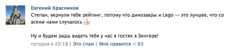 Кроме того, официальный представитель «ВКонтакте» Евгений Красников (25) лично пригласил школьника в главный офис компании, заметив, что динозавры и Lego, которых так любит мальчик, — «это лучшее, что со всеми нами случалось».