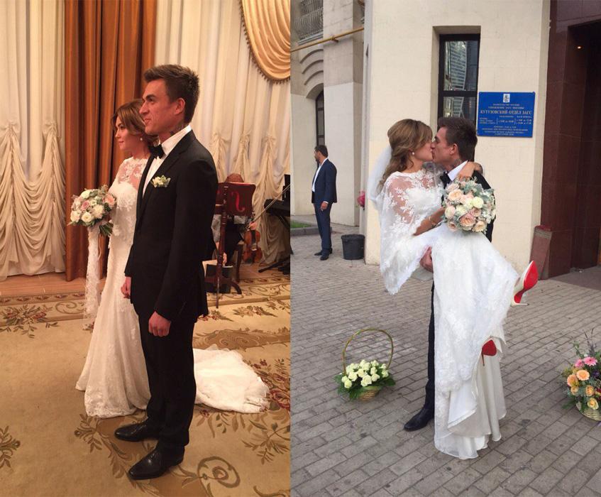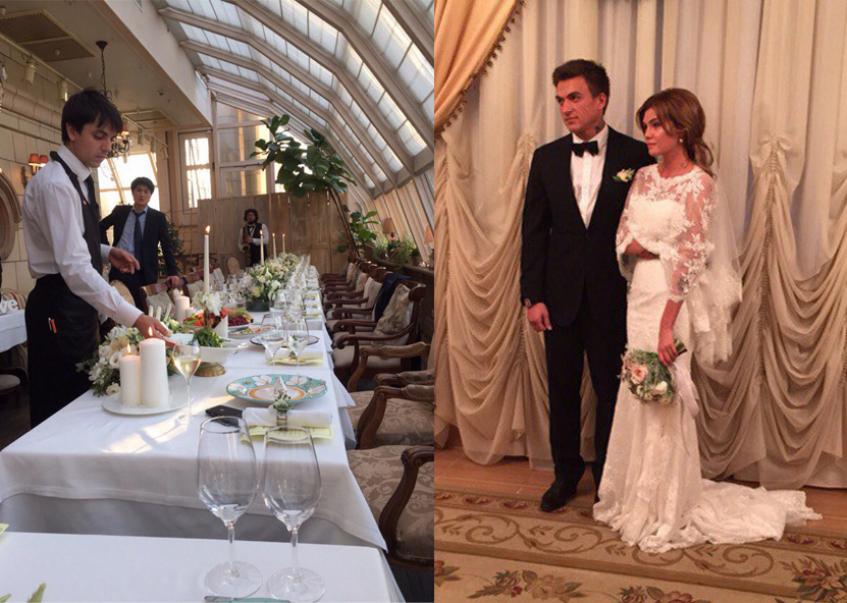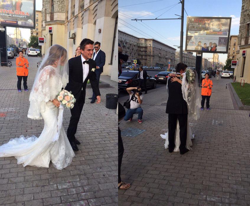 Роспись прошла в Кутузовском ЗАГСе в окружении родных и близких друзей, после чего гости и виновники торжества отправились в ресторан Боно, расположенный в гостинице Radisson Royal.