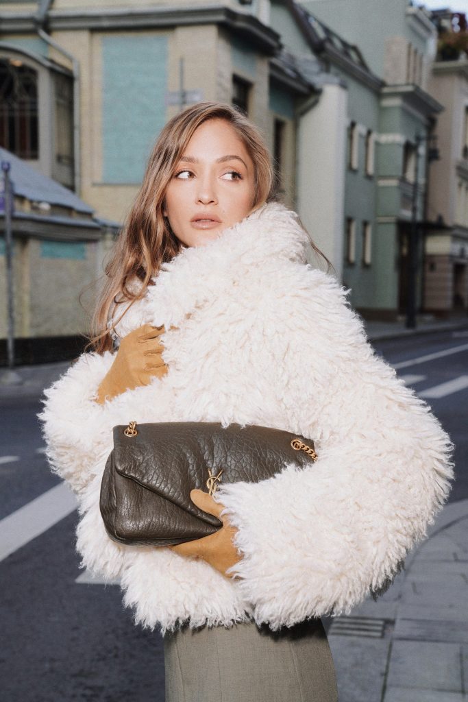 Последняя коллекция Миучи и Рафа была некой ретроспективой архивных коллекций прошлых лет вперемешку с футуристическими элементами, которые заставляют нас заглянуть в будущее. Мне безумно понравились легинсы-колготки в сочетании с водолазкой или фактурным топом, их можно носить с остроносыми туфлями или массивными лоферами. Очень много кожи, ремней. Кожаные короткие платья, юбки, серебряные сумки, платье-зеркало с дождевиком – все это мне очень откликается. Я люблю сочетать несочетаемое, играть с фактурами тканей и стилем. Все эти модели я с легкостью выгуляю и на работу, и на светский выход.