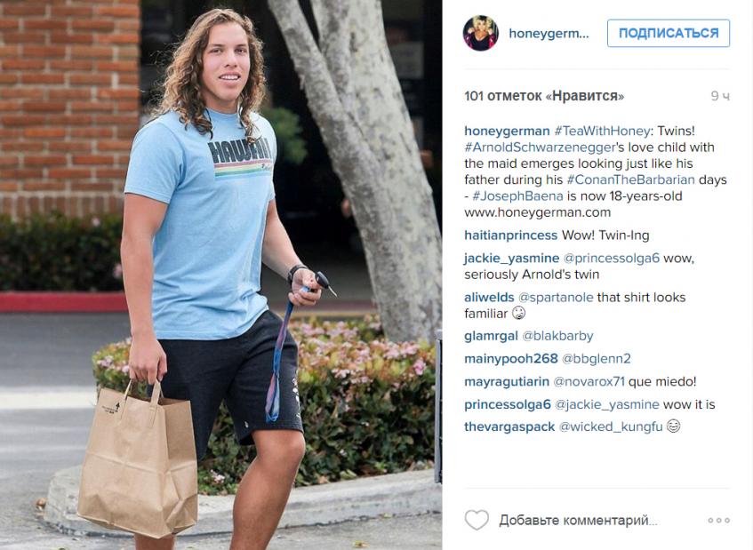 Уже не первый год поклонники Арнольда Шварценеггера (68) жарко спорят, действительно ли Джозеф Баэна (18) является внебрачным сыном актера. Но чем старше становится мальчик, тем заметнее, что он как две капли воды похож на своего звездного отца.