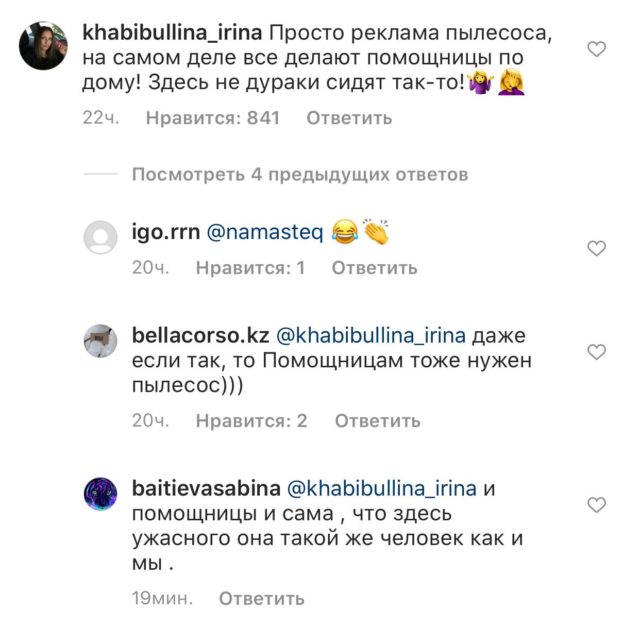 «За домом ухаживает прислуга… Уверенна в этом», «Да, да конечно. Мы все поверили, что у вас нет домработницы», «Просто реклама пылесоса, на самом деле все делают помощницы по дому!» — писали комментаторы.