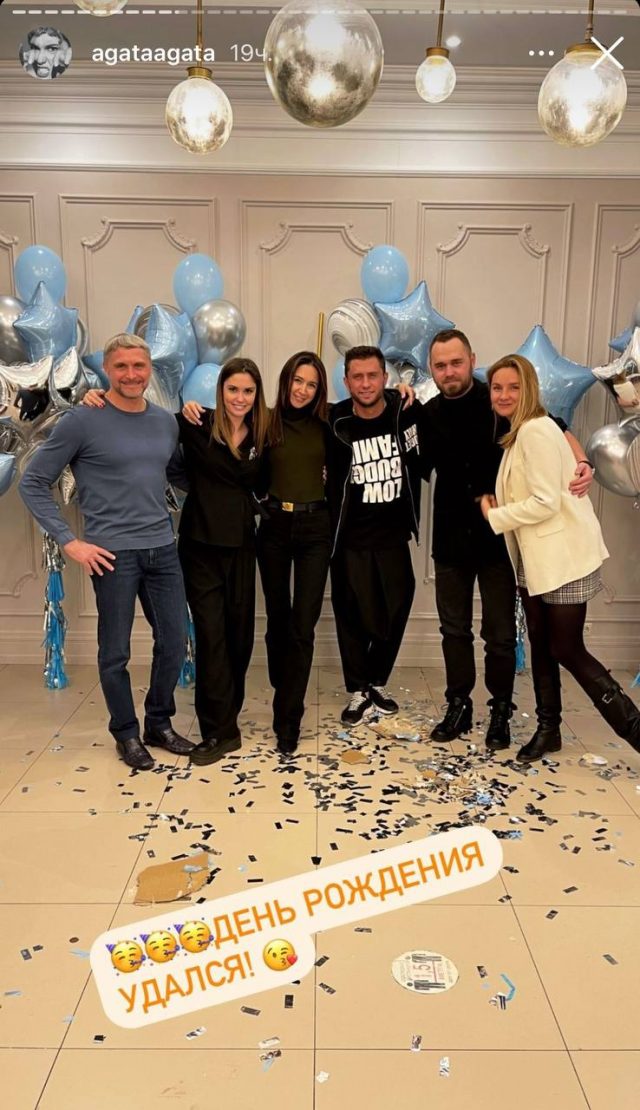 Несмотря на громкий развод, звезды поддерживают отношения ради детей. Недавно Тимофею, сыну Агаты и Павла, исполнилось девять лет. В честь такого события Муцениеце решила устроить вечеринку и пригласила Прилучного. Позже актриса выложила в Stories фотографию, на которой позирует вместе с бывшим мужем и близкими.
