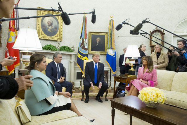 Давненько мы не видели Меланию Трамп (48) и уже успели соскучиться по ее идеальным нарядам первой леди. И сегодня в Сети, наконец, появились новые фото из Белого дома — Дональд Трамп (72) с супругой принимали президента Колумбии Ивана Дуке и его супругу Марию Юлиану Руис.