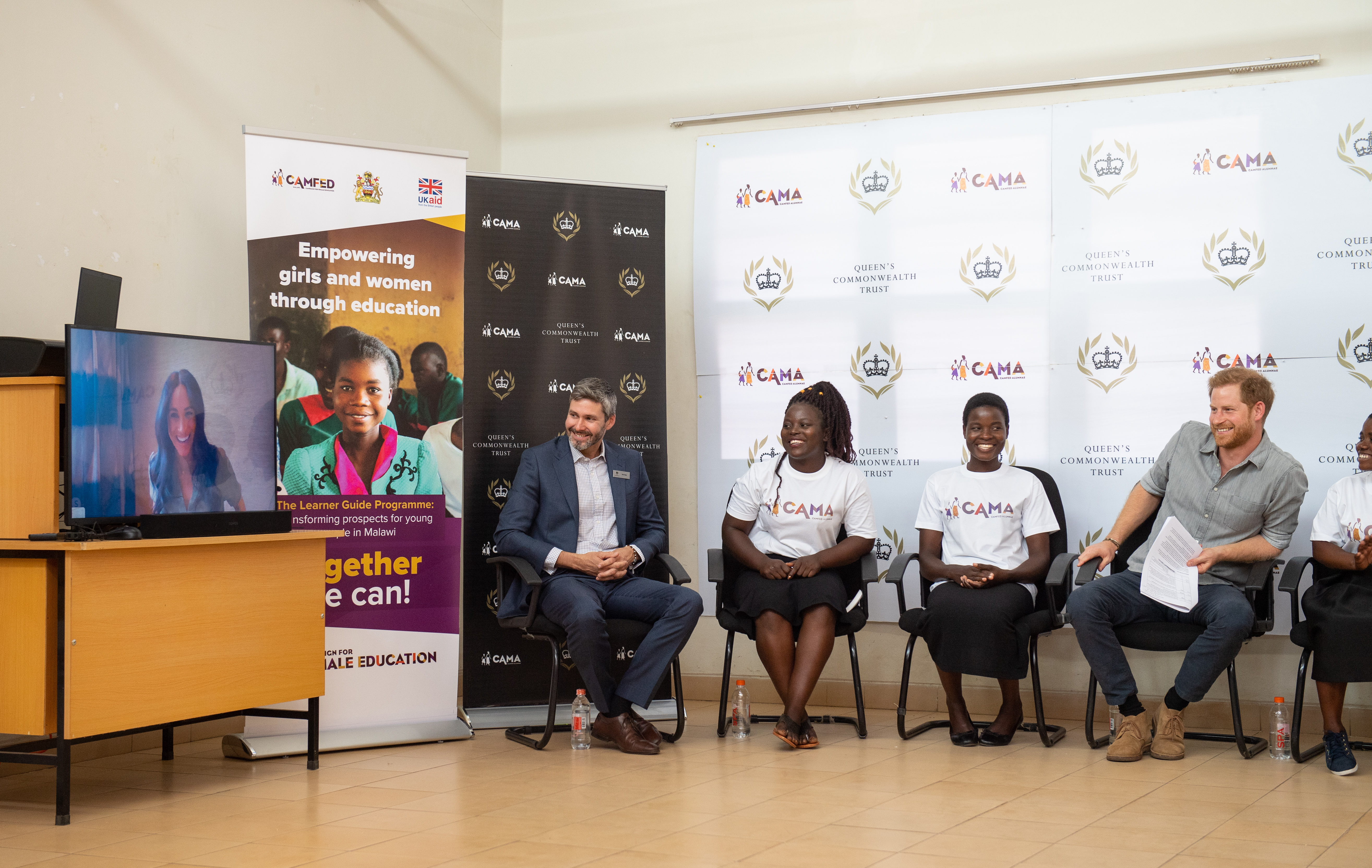 А вчера принц Гарри отправился с одиночным визитом в Лилонегве, где у него состоялась встреча с ученицами женского колледжа Nalikule College of Education. Как и планировалось, герцог появился там один, но в какой-то момент он прервал свое выступление, чтобы представить тайного гостя. Им оказалась Меган Маркл! Герцогиня поприветствовала девушек по видеосвязи и присоединилась к разговору.