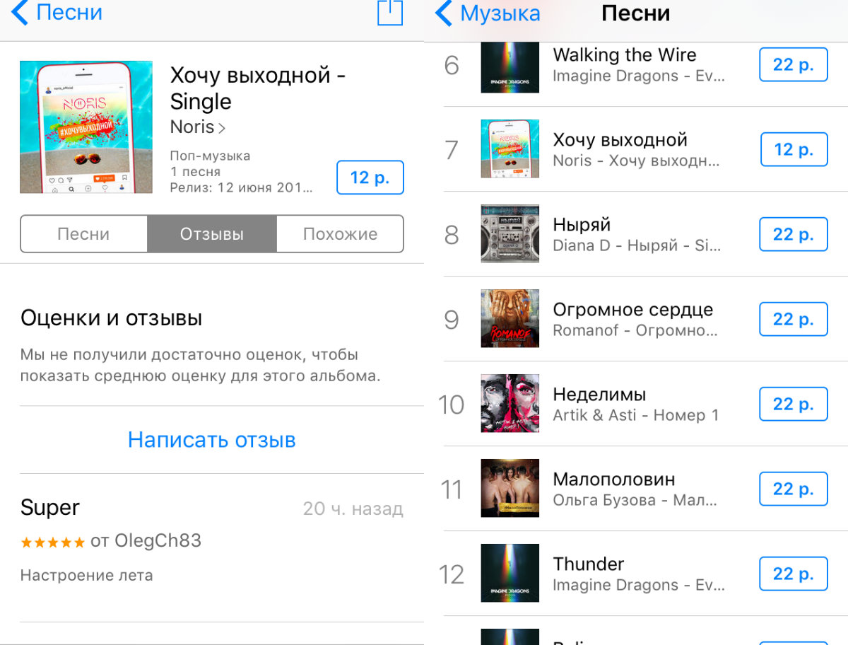 Сейчас ситуация такова – новая песня Бузовой «Мало половин» занимает 11-ю строчку, а Noris разместился на седьмом месте.