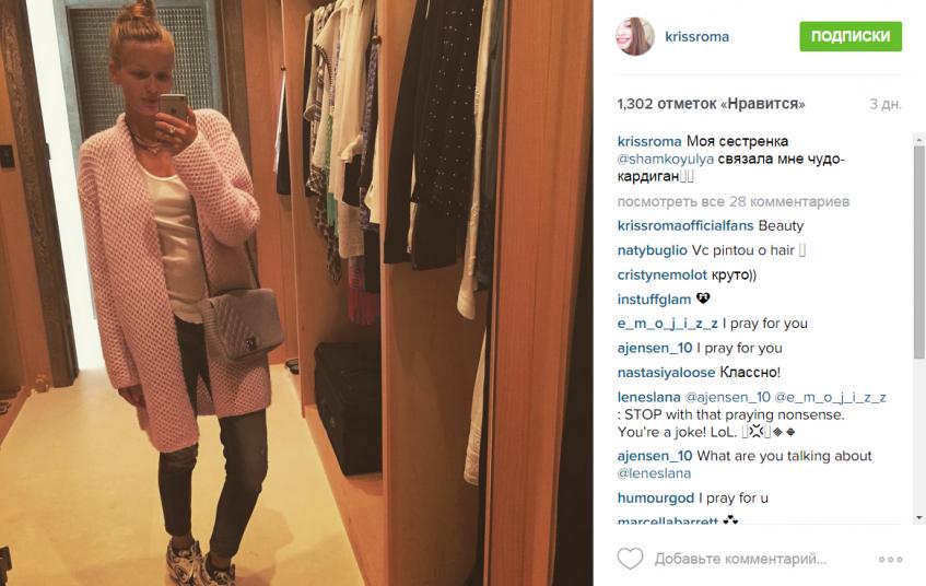 Девушка решила похвастаться новым кардиганом, который, по ее словам, связала ее сестра. Однако внимание фанатов было приковано не к модному предмету гардероба, а к слегка выступающему, но уже значительно заметному животику модели.