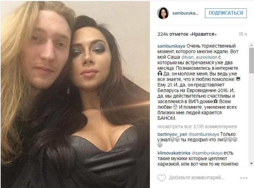 Ты знаешь, что Настасья Самбурская (28) не любит делиться с поклонниками подробностями своей личной жизни, предпочитая оставлять ее исключительно для себя. Но не так давно звезда сериала «Универ» призналась, что сейчас она встречается с музыкантом Александром Ивановым (21), известным под псевдонимом Ivan, который в этом году представит Белоруссию на конкурсе «Евровидение». А 16 марта прошло сообщение, что на днях Александр прострелил себе руку!