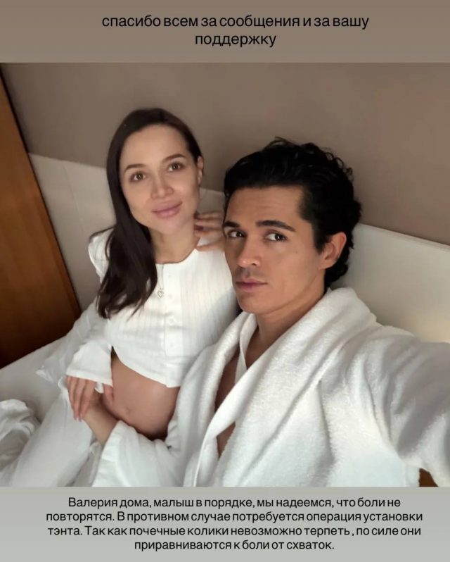 Луис Сквиччиарини в запрещенной соцсети выложил Stories и подписал: «Спасибо всем за сообщения и вашу поддержку. Валерия дома, малыш в порядке, мы надеемся, что боли не повторятся. В противном случае потребуется операция установки тэнта. Так как почечные колики невозможно терпеть, они приравниваются к боли от схваток».
