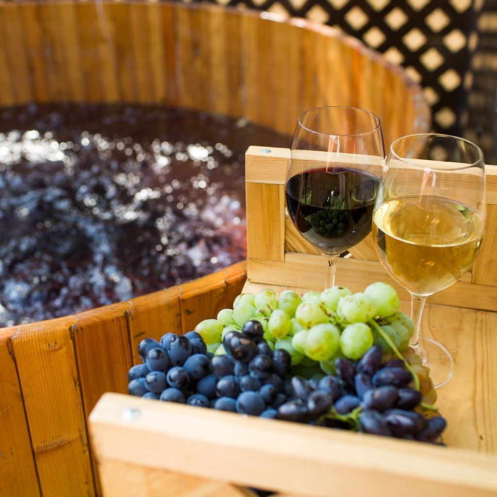 Здесь можно не только прогуляться по винзаводу и виноградникам между двух морей – Черным и Азовским – и дегустировать вина в беседке с видом на лиманы. Еще здесь можно принять «Южные винные ванны»: забраться в гидромассажную купель из лиственницы, наполненную жидкостью, обогащенную вином, вытяжками из косточек, кожицы и листьев винограда, лавандой и арома-маслами. И наслаждаться!