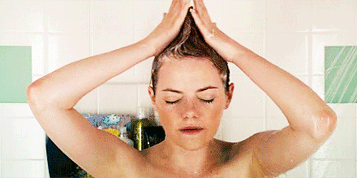 Совет: используй небольшое количество шампуня и не бойся потратить немного больше времени, чтобы тщательно промыть волосы. Услышишь скрип – значит, все сделала верно! И да, лучше использовать прохладную воду, она полезна для кровообращения кожи головы.