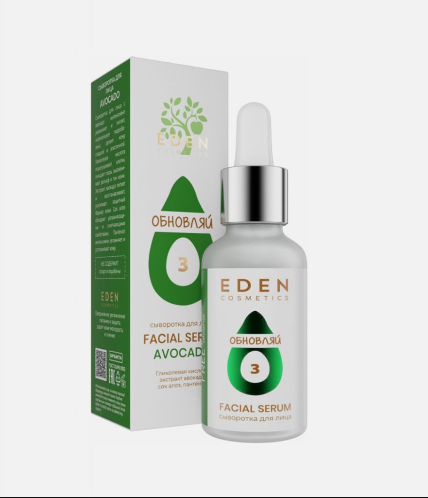Сыворотка для лица обновляющая с экстрактом авокадо и гликолевой кислоты Avocado, Eden, 439 р.