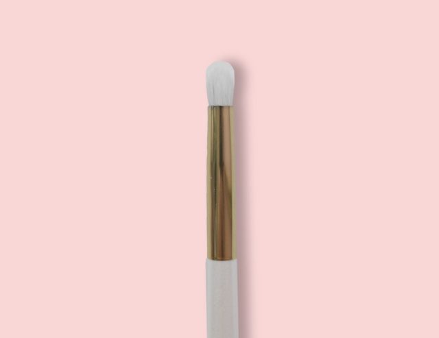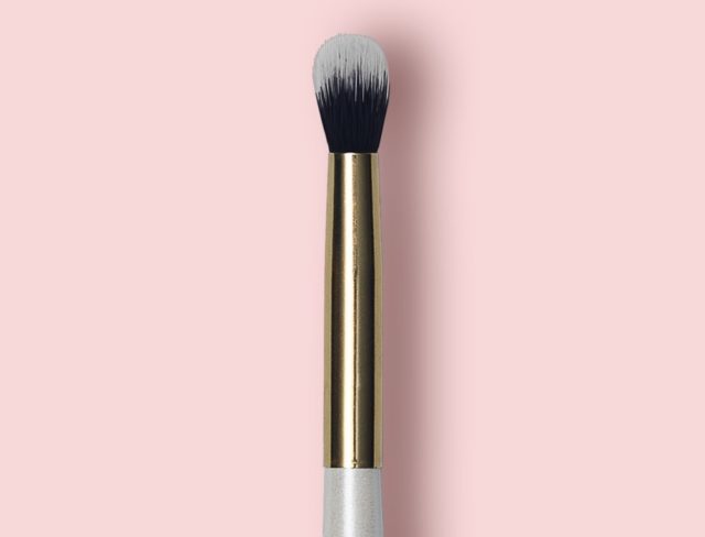 Еще один маст-хэв – объемная мягкая кисточка с овальным срезом. Она поможет мягко затемнить уголок глаза или нанести блестящие тени на и незаменима при растушевке.