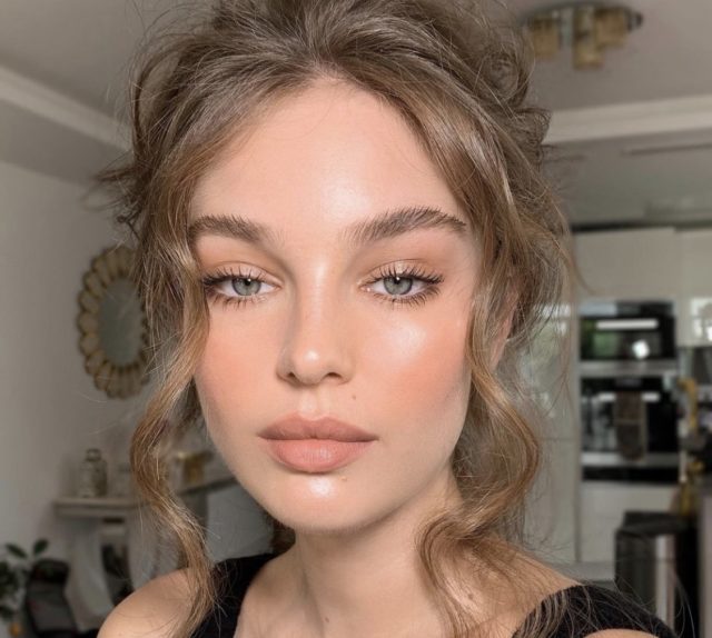 Чтобы добавить коже сияния с помощью хайлайтера, используйте кисть, которой наносите румяна или веерную.