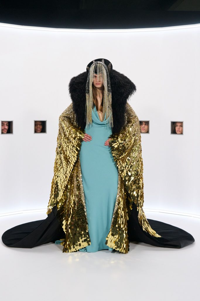 Schiaparelli вновь напоминает всем, что на нем держится весь кутюр. Мы снова видим сложные формы и силуэты, разнообразные ткани и бесконечные отсылки к великому. Бренд остается приверженным классическим кутюрным показам, где в первую очередь демонстрируются одежда и мастерство шитья, а не «жирный» гест-лист, хотя и он здесь был, как минимум, в лице Тейаны Тейлор. Кстати, периодически даже проскакивает мысль, что свою руку к самой «пернатой» коллекции сезона в теории мог приложить и главный эксперт по перьям – Илья Мигмун.