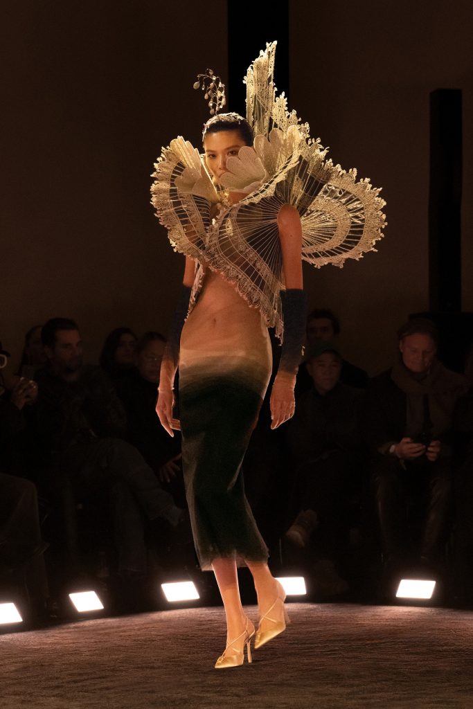 Показ Алексиса Мабия стал, пожалуй, самым радикальным жестом Недели моды. Коллекция и само шоу были полностью созданы с помощью искусственного интеллекта. Зрители физически присутствовали в зале, но на экране перед ними разворачивалась симуляция – не существовали ни платья, ни модели, ни подиум. Этот опыт «зловещей долины» вызвал закономерный вопрос о границах моды, традиционно основанной на ручном труде, особенно когда речь идет о кутюрных коллекциях. Пользователи соцсетей также не оценили задумку дизайнера и выразили свое недовольство относительно жеста, оскорбляющего сами понятия моды, дизайна и кутюра.