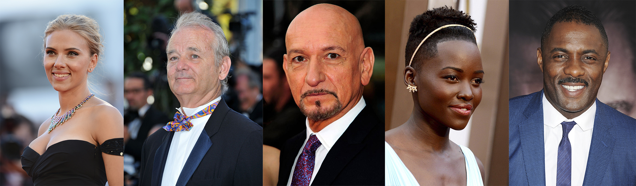 Скарлетт Йоханссон (31), Билл Мюррей (65), Бен Кингсли (72), Люпита Нионго (33), Идрис Эльба (43)