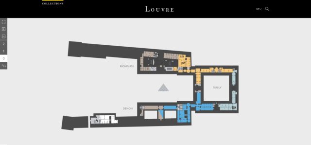 Для того, чтобы не заблудиться в виртуальном музее, была создана интерактивная карта, с помощью которой можно исследовать Лувр комната за комнатой.