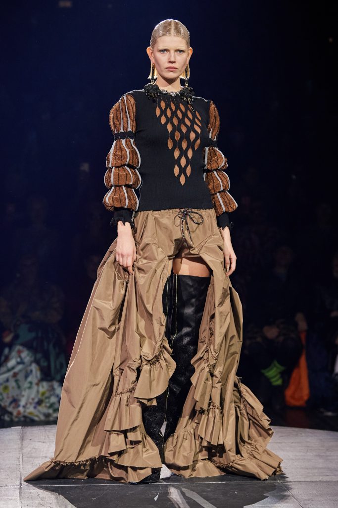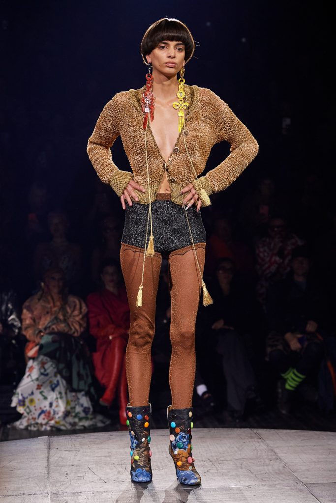Для любителей минимализма и лаконичности показы британского дизайнера Vivienne Westwood, основательницы стиля панка в высокой моде, всегда становятся историей «без слез не взглянешь». Для последнего показа в Париже она объединилась со своим мужем австрийским модельером Андреасом Кронталером и стилистический хаос достиг апогея: модели резво шагали по подиуму в образах из эпохи Возрождения – от дворян до простолюдинов. В шоу также приняла участие Белла Хадид, которая появилась в подобном максимально пестром аутфите из тренча, комбинации с блестками и сапог на экстремальной платформе. После показа модель решила поделиться снимками с бэкстейджа – и, видимо, хаотичный манер коллекции пришелся ей по вкусу.