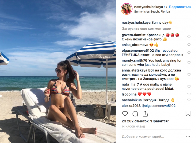 По ее словам, она носит утягивающий бандаж, старается правильно питаться и делает специальные процедуры у косметолога. И эффект налицо: сегодня она выложила фотографию с отдыха во Флориде и выглядит отлично!