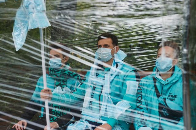 В Екатеринбурге Алексей Гаврилов установил в Основинском парке куб из прозрачной пленки, символизирующий комнату для самоизоляции. Облачившись в костюм, сшитый из медицинских масок, актёр провёл акцию против ковидных ограничений. По словам предпринимателя, любая инфекция проникает через медицинскую маску так же легко, как через пленку, а значит, эти меры никак не защищают людей от COVID-19.