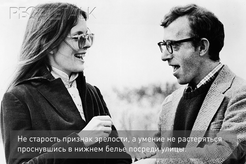 Четырехкратный обладатель премии «Оскар», талантливый и неповторимый режиссер Вуди Аллен (80) является одним из тех людей, чье имя известно любому киноману. Каждое его творение имеет ошеломляющий успех, а самые лучшие актеры считают за честь попасть на его съемочную площадку. Помимо работы в кино Аллен известен еще и как писатель – он стал автором многочисленных романов и пьес – и знаток музыки. Аллена считают гением, и вполне заслуженно. Сегодня мы предлагаем тебе его самые яркие и знаменитые высказывания.