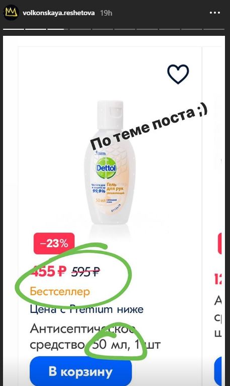 Анастасия молчать не стала и выложила пост в Instagram, объяснив ценообразование: «После того, как я поняла, что санитайзеры будут нужны и мне, и моим клиентам, то решила закупить их в достаточном количестве. К сожалению, цены закупки, учитывая нынешний спрос и их дефицит, была выше, чем могла быть год назад. Поэтому, как и на любой другой товар, здесь уместна наценка 50-60%. Те, кто занимается продукцией, прекрасно понимают, что это адекватные цифры и все в норме вещей. Желающих было очень много. Но также было достаточно тех, кто возмущался, что это дорого. Санитайзер сейчас стоит 400 рублей. Зайдите на крупнейший в РФ online- магазин OZON и посмотрите, сколько сейчас там стоит антисептик в чуть меньшем объёме, чем у нас. (455 руб. За 50 мл — прим. редакции) (здесь и далее орфография и пунктуация автора сохранены — прим.редакции).