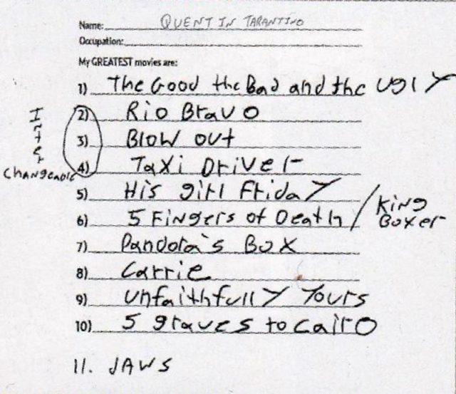О лидере списка — режиссере Серджо Леоне — Квентин рассказал: «Я бы сказал, что Леоне — величайшее сочетание киностилиста, который создает свой собственный мир, и рассказчика».