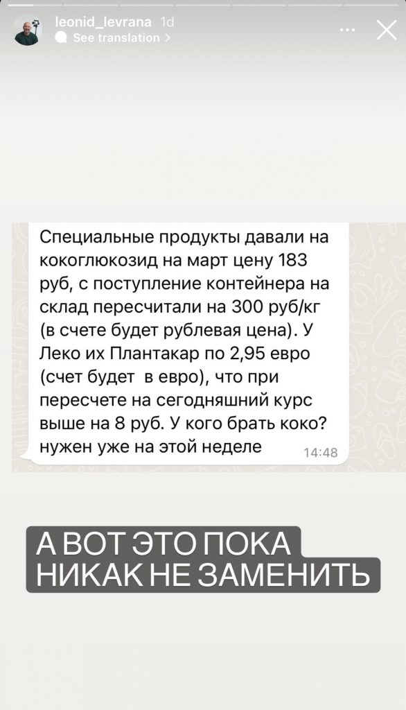 Многие косметические препараты, сырье и комплектующие привозят в Россию из-за рубежа. Поэтому сейчас некоторые из них невозможно доставить, а на другие повышаются цены. В связи с этим у многих русских бьюти-брендов начались перебои с поставками. О том, как справляется бренд Levrana, рассказал в своем Instagram ее основатель Леонид Леврана.