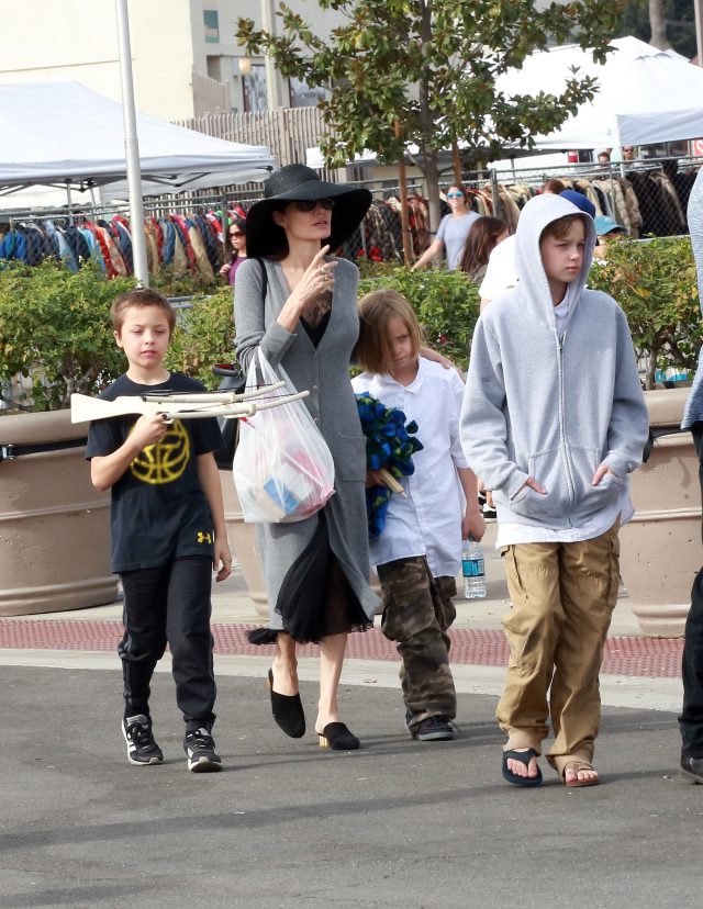 После такого важного дела можно и отдохнуть. Так что в воскресенье актриса появилась на блошином рынке Роуз Боула в Пасадене вместе с детьми Шайло (11), Вивьен (9) и Нокс (9).