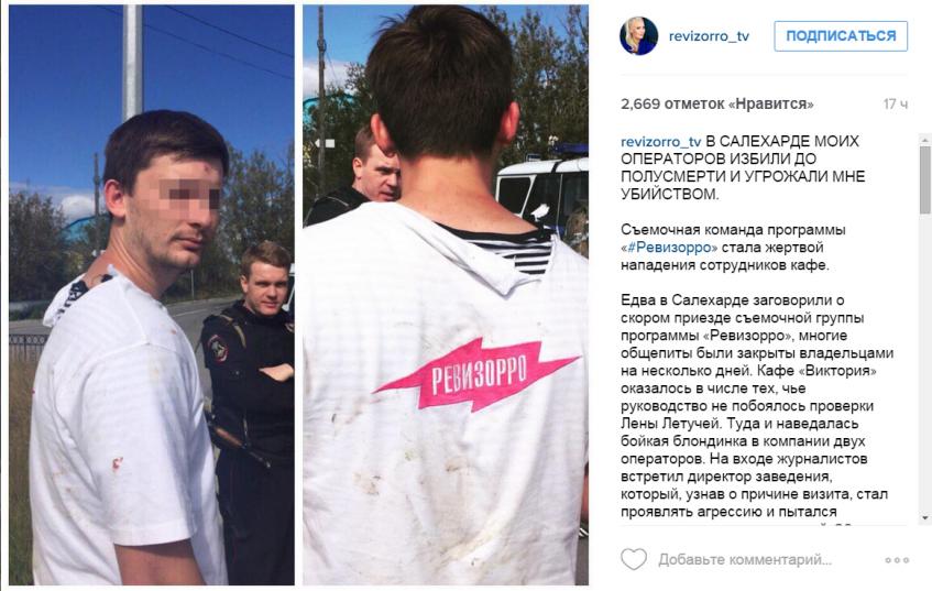 Как ты, наверное, помнишь, чуть меньше года назад, 8 августа 2015 года, в ходе проведения съемок в кафе «Виктория» его персоналом было совершено нападение на съемочную группу «Ревизорро». Тогда на съемочной площадке завязалась серьезная драка, в ходе которой операторам были нанесены увечья, а один из них — Валентин Герасимов — попал в больницу с диагнозом «закрытая черепно-мозговая травма». Также пострадала и съемочная аппаратура. Что касается ведущей шоу Елены Летучей (37), то ей пришлось пройти реабилитацию после нервного срыва в одной из клиник Москвы. И вот стало известно, что Салехардский городской суд вынес приговор по делу об избиении съемочной группы.