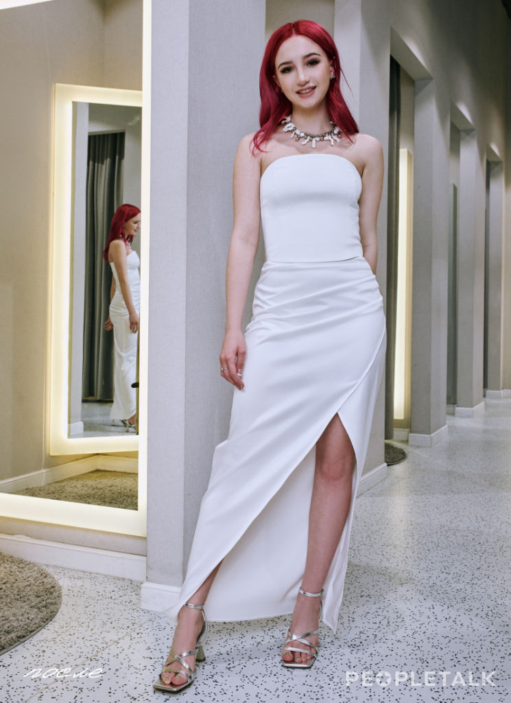 У Насти очень яркая внешность и в ее выпускном образе мы хотели подчеркнуть ее внутреннюю и внешнюю женственность с помощью лаконичного платья и акцентных украшений.