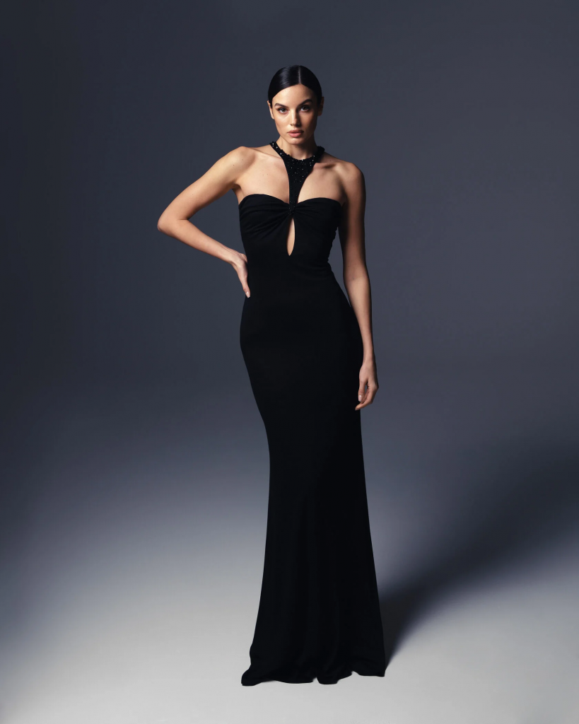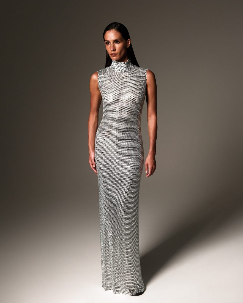 Обычно о Mastersuit говорят в контексте идеального тейлоринга, но в последние сезоны модный дом уверенно заявляет о себе и в женском сегменте – особенно в вечерних образах. Платья бренда строятся на ремесленном подходе: сложная вышивка, перья, пайетки и безупречная работа с формой делают каждую модель полноценным выходом, а не просто нарядом для особого случая.