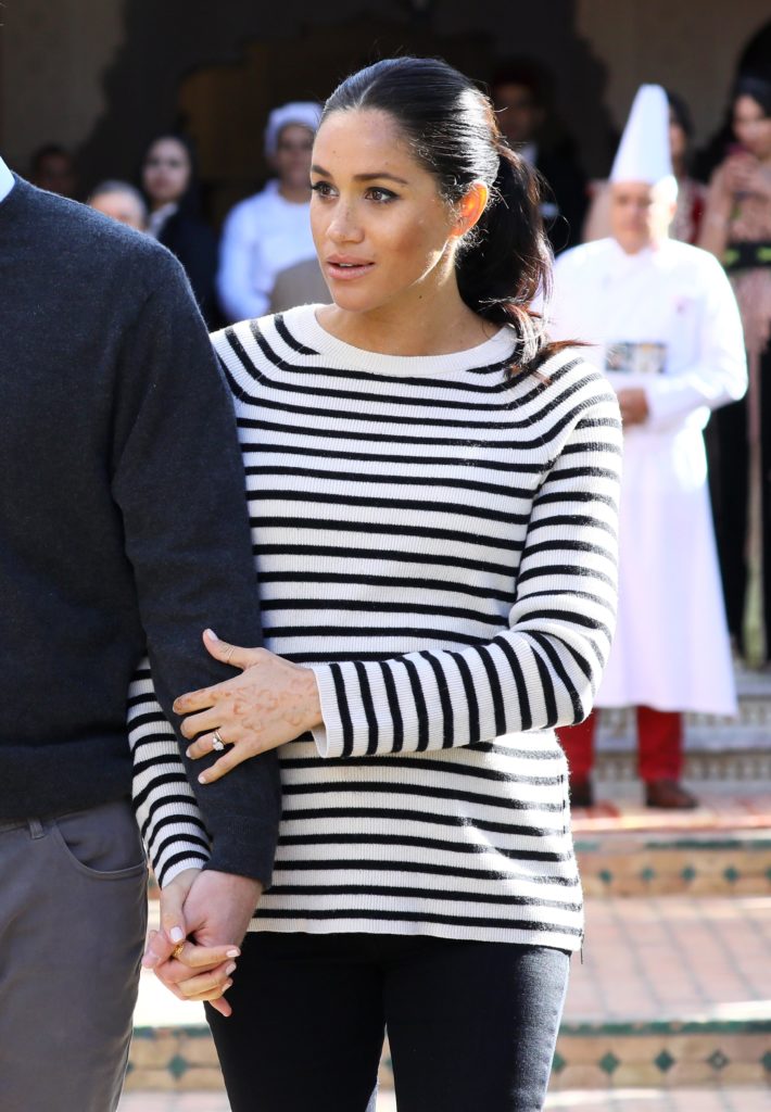 На днях Меган Маркл в очередной раз повторила образ Кейт Миддлтон. Папарацци подловили Маркл с принцем Гарри за ужином в ресторане Locanda Verde: она появилась в черно-белом компбинезоне от Gabriela Hearst. Около месяца назад Кейт Миддлтон появилась в похожем образе на премьере фильма «Топ Ган: Мэверик». Журналисты назвали ее образ одним из лучших за все время.