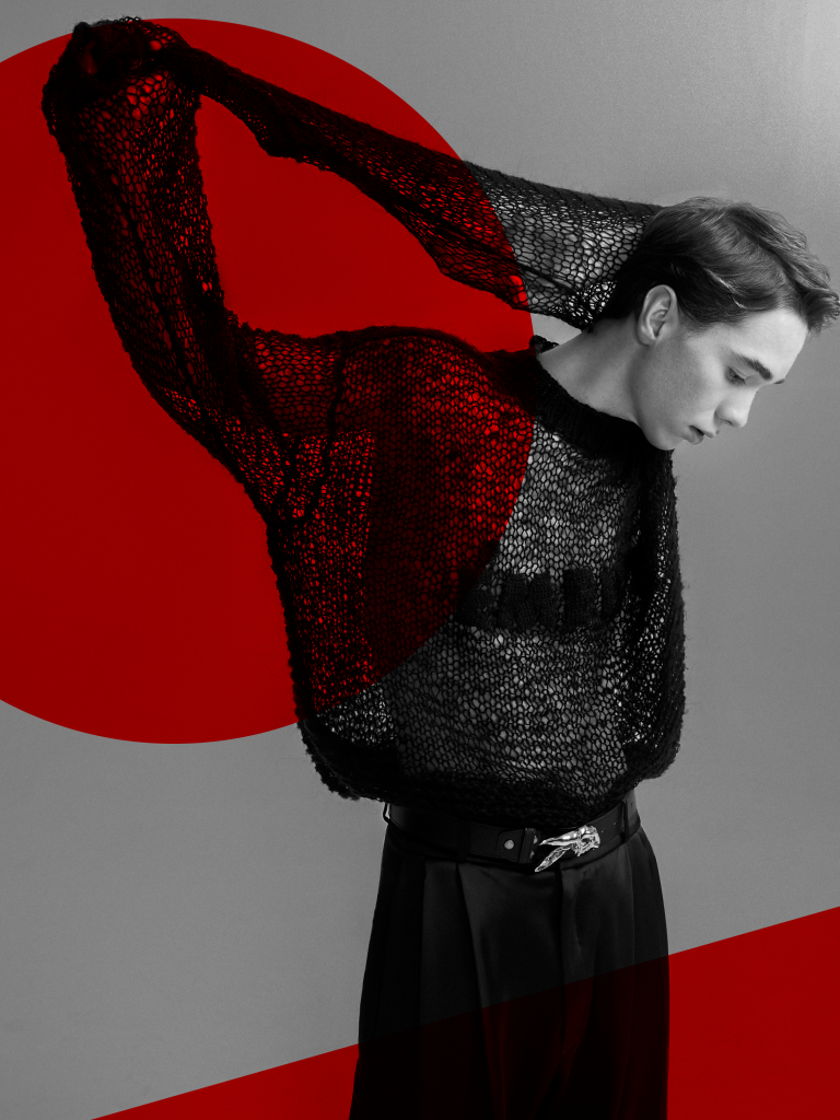 Свитер — une petite émeute, брюки и ремень — Chernim Cherno, кеды — NONAMECONCEPT