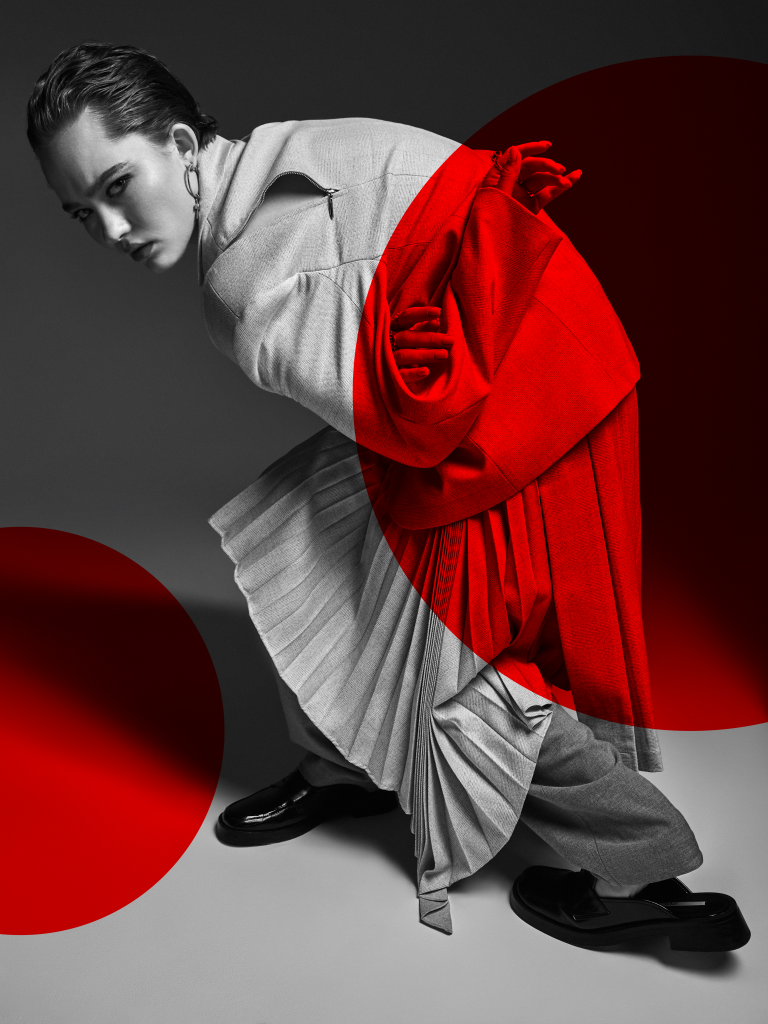 Пиджак, юбка и брюки Surovaya, лоферы — собственность стилиста.
