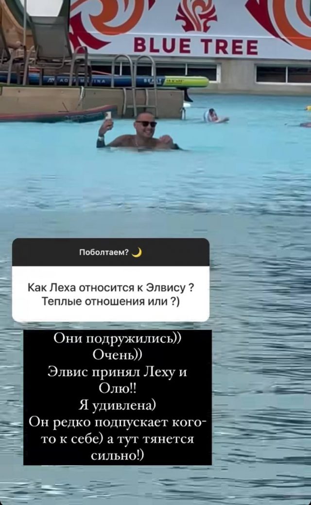 Сегодня блогерша решила отвечать на вопросы подписчиков. Один из них поинтересовался, какие отношения у Леши (настоящее имя рэпера – Прим. ред.) с ее сыном от второго брака, Элвисом. На что Айза выложила трогательное видео, как они вместе плавают в бассейне и подписала: «Они подружились)) Очень)) Элвис принял Леху и Олю!! (сестра Гуфа – Прим. ред.) Я удивлена) Он редко подпускает кого-то к себе) а тут тянется сильно!)» (орфография и пунктуация автора сохранены – Прим. ред.).